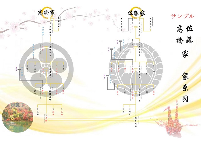 当事務所では先祖調査のスペシャリスト行政書士が調査を行ない、当事務所専属のデザイナーに制作を依頼しております。